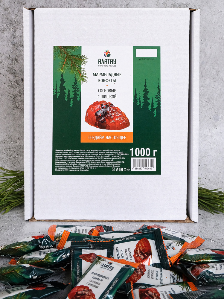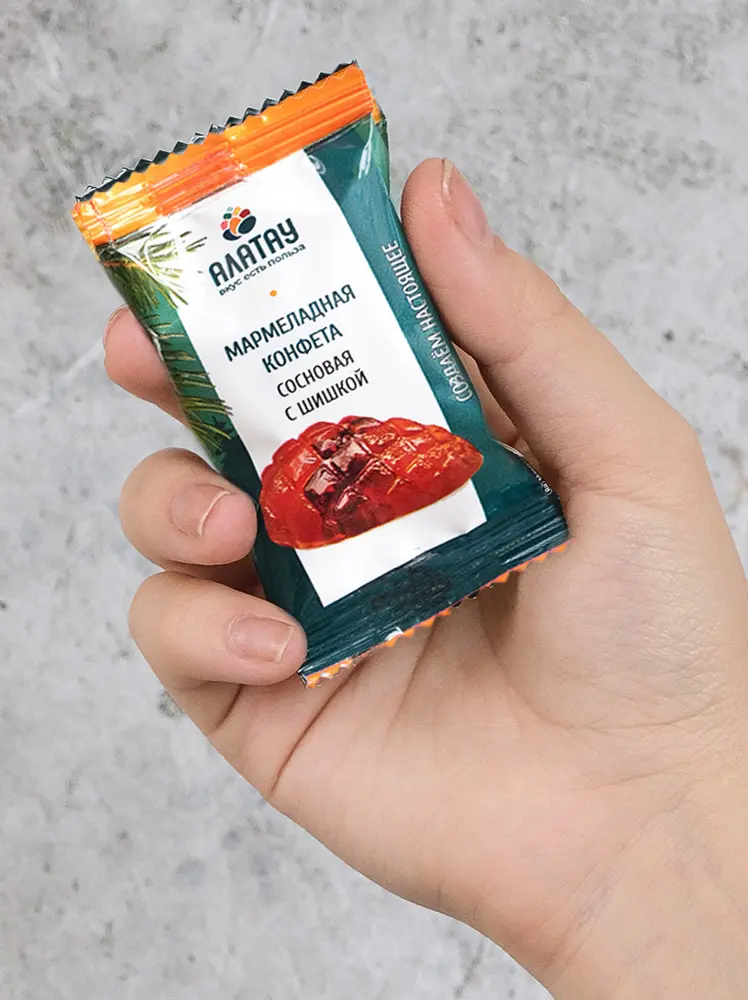 Особенность мармелада – сосновые цукаты. Это молодые сосновые шишки, сваренные в сахарном сиропе. Шишки придают мармеладу яркий вкус и наделяют множеством полезных свойств – противовоспалительным, антимикробным, антиоксидантным. Шишка повышает иммунитет, снимает стресс, улучшает работу мозга.